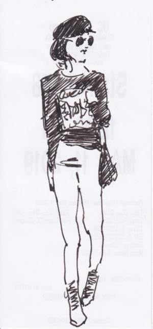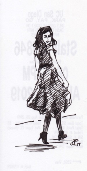 I noticed the paper used for parking receipts at UCSD Medical Center used was strong and smooth yet took ink particularly well without any bleed. Some of these are with fountain pen and others are with a porous point water based ink pen. All were drawn in the waiting room keeping the work time constrained.
